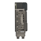 The PCB is reinforced by an aluminum backplate that adds structural rigidity, helping to prevent flex and protect components and trace pathways from damage. The rear features a wide vent that allows hot air to escape towards chassis exhaust fans instead of being recycled back into the GPU cooler.