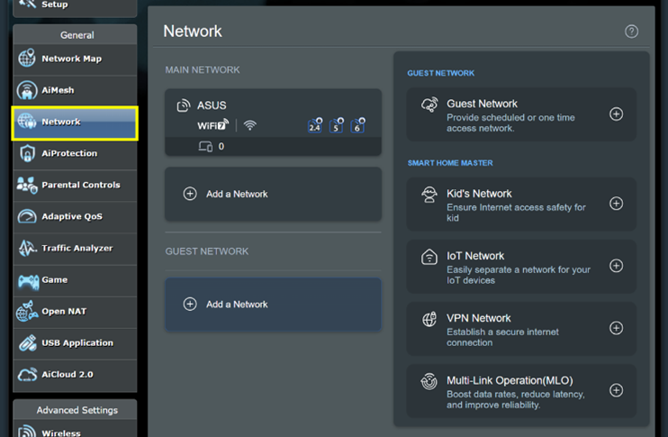 2. Starting from firmware version 3.0.0.6.102_35404, the name will change from [Smart home Master] to [Network].
